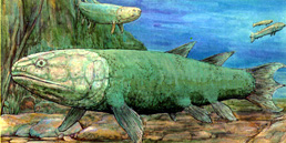 そして安住の地を手に入れたつもりのユーステノプテロンが川での生存競争に敗れ陸 にあがるため両生類、さらに爬虫類へと姿を変えていくのですが、それはまた後のお 話し